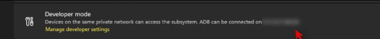 Open the start menu and tap on Windows Subsystem for Android app. Enable developer options in the app