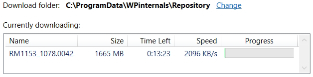 Enable 'show hidden files' in windows file explorer, the files you downloaded will be in C:\ProgramData\WPinternals\Repository